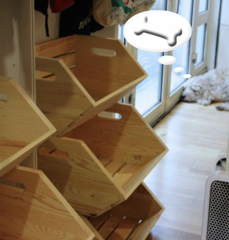 Et après transformation, le modèle Type 1 lui sert de self-service à l'abri du regard de notre chien Happy !